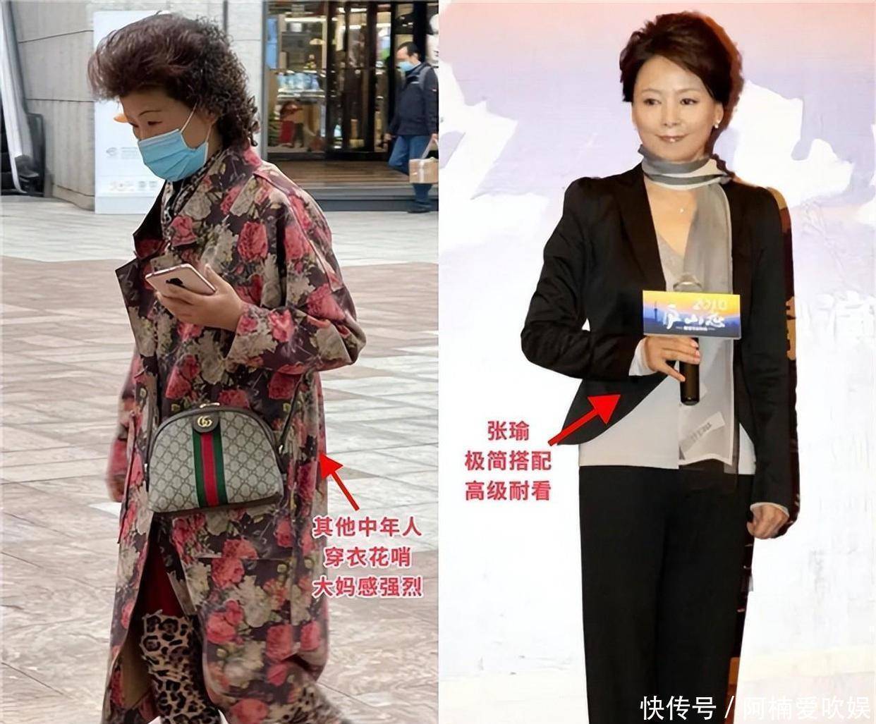 ×穿衣松松垮垮,显胖还邋遢为了掩盖发福的身材,许多中年妇女偏爱穿宽松的老年装,衣服宽大松垮,虽然看起来能遮住赘肉,但也会把身形线条打得模糊不清,整体轮廓不够明显,反而给人一种随意不修边幅的感觉。张瑜到了这个年纪,依旧保持着好身材,穿的衣服都是很贴合自己身形的,不刻意做作,站在那里就特别有魅力。