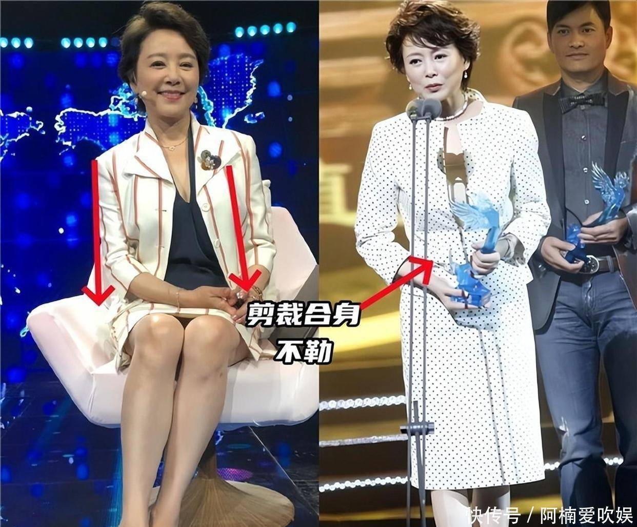 不跟风赶潮流,只穿合身的衣服与其盲目追赶时尚买那些不太适合自己的衣服,不如像张瑜一样,买衣服时多注意版型和剪裁,毕竟上了年纪,穿得舒适得体才最重要。衣服不能太紧,也不能太松,特别要留意肩线、腰部、衣摆这些地方的裁剪。测量好自己的三围,然后挑选合适的尺码,这样就能大大减少踩雷的可能性。